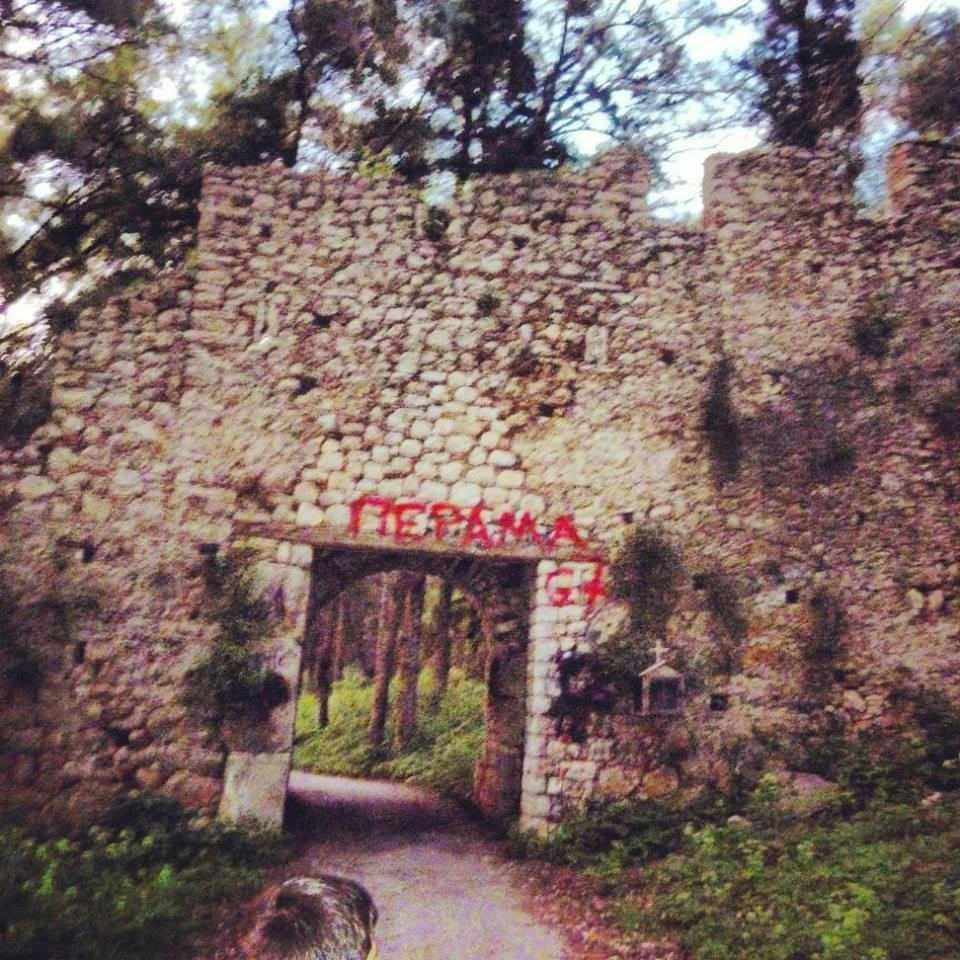 Εδώ ο… ποιητής, θέλησε να εκφράσει τη λατρεία του για την ομάδα του «χρωματίζοντας» το τείχος του Βυζαντινού κάστρου της Βόνιτσας …
