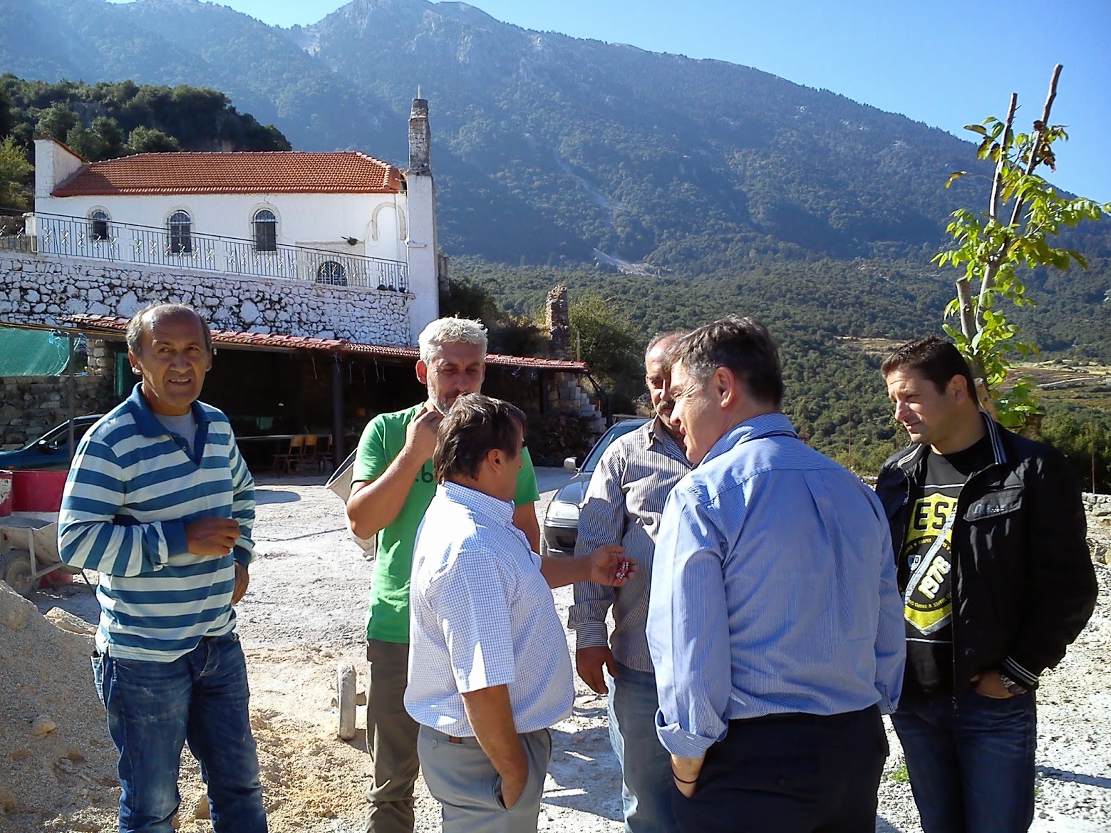 Στα πλαίσια της συνάντησης αυτής ο κ. Αποστολάκης επισκέφθηκε και το παλιό χωριό της Κομποτήςκαι παρακολούθησε τις εργασίες που γίνονται στο χώρο τηςΑγίας Παρασκευήςστη θέση Βατιά, που χτίστηκε το 1865 και ανακατασκευάσθηκε πρόσφατα.